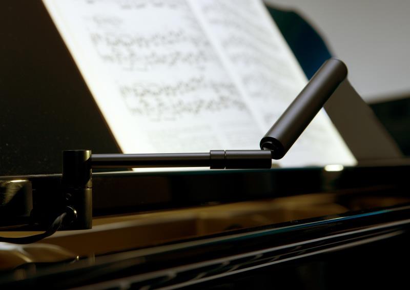 Les lumières sont attachées à la partie inférieure de la planche du pupitre sur les côtés droit et gauche. Ils sont conçus de manière à ce que le couvercle du piano puisse être fermé sans avoir à retirer les lumières. Les deux lumières sont presque invisibles et réglables très individuellement pour un éclairage optimal des notes et du clavier.